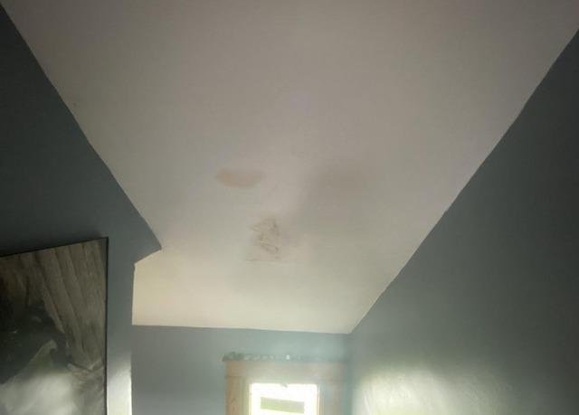 Here is another view of the interior ceiling water damage from several years of the roof leaking and now causing extensive damage to the inside of the home.